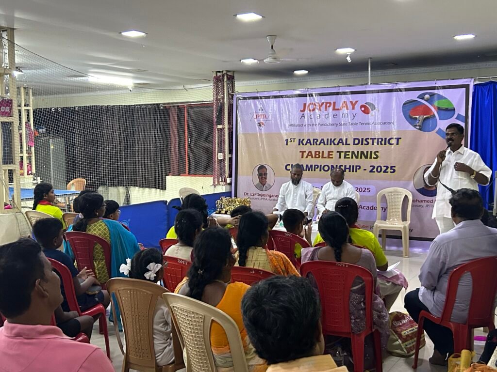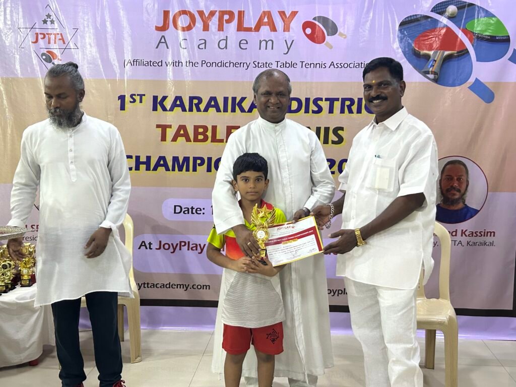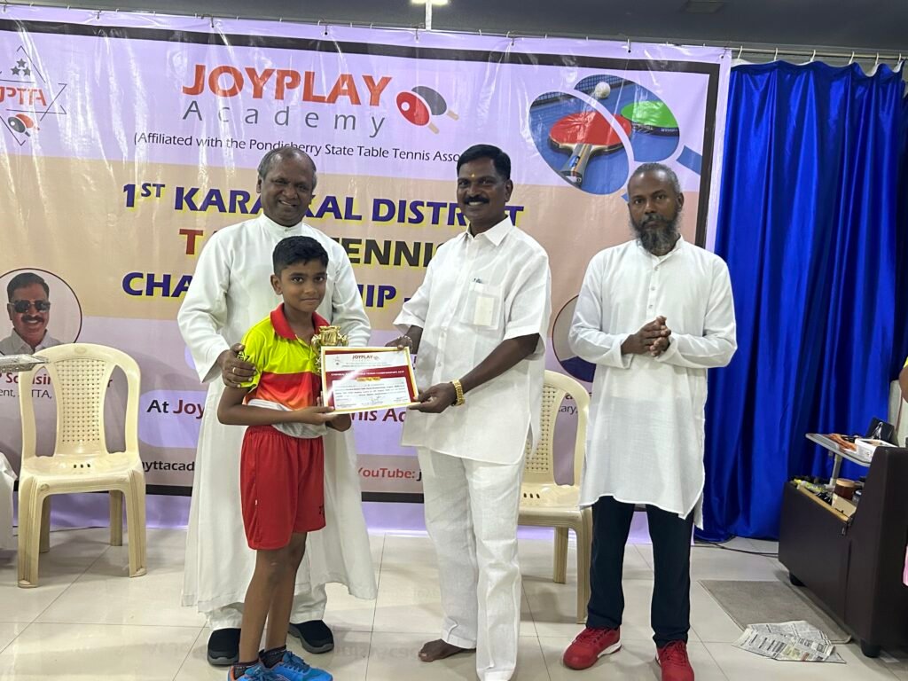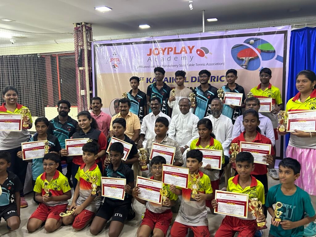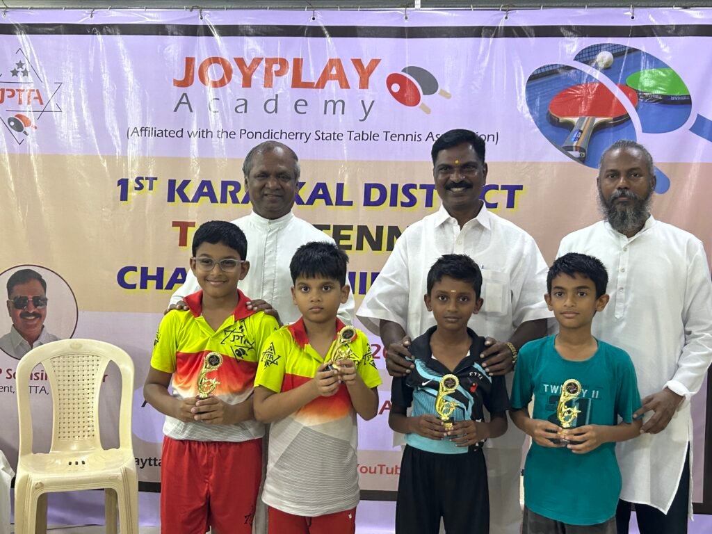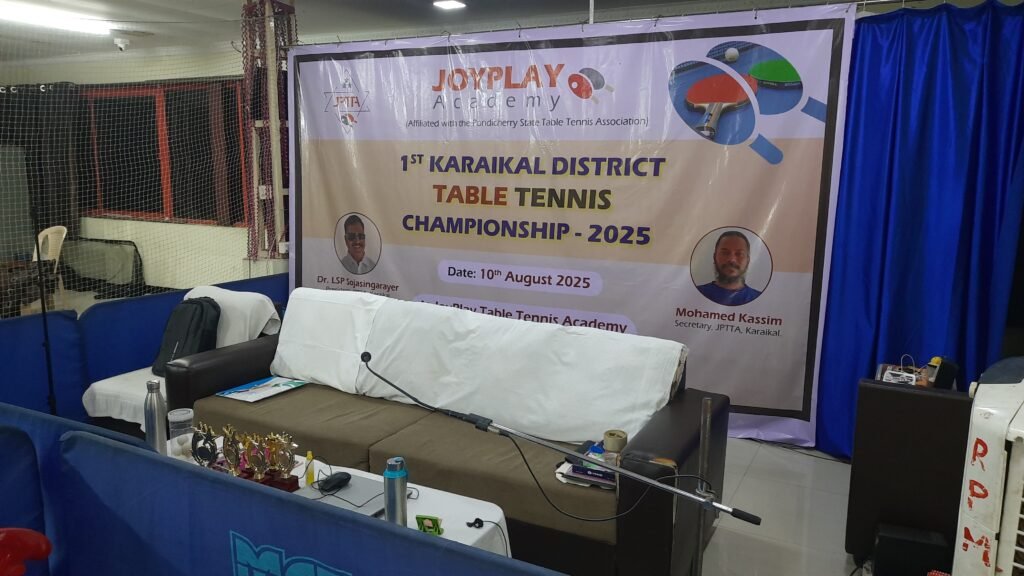 On 10th August 2025 Karaikal 1st District Tournament held at Joyplay Table Tennis Academy, Karaikal. We have take this initiation to develop Karaikal player’s skills. Many students are happily participated in the tournament and won prizes.